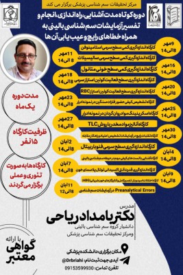 - کارگاه تئوری و عملی یک روزه آشنایی با تستهای کیفی مهم در حيطه سم شناسی باليني
